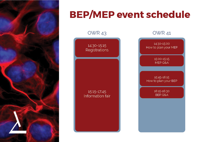 From 14:30 to 15:15, lab representatives can register in OWR 43. The information fair for students will start at 15:15, in the OWR 43.
